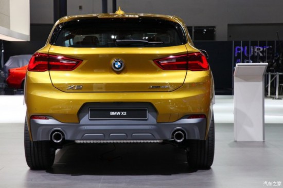 从图片来看,入门的X2 20i在外观上和早前亮相的高配车型并没有太大差别,看上去仍旧充满好动活泼的跨界味道。不过来到车尾,我们可以明显看到20i车型仅配置单边单出的排气管,气势上要比高配车型的双边共双出设计差一些。